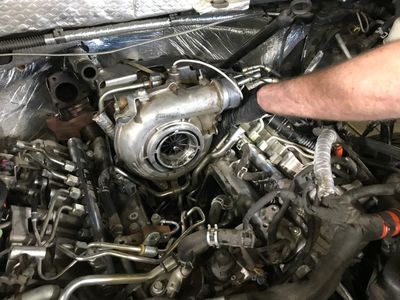 A: So, without a computer to talk to the PCM, if you are trying to diagnose an "air management issue," i.e., boost problem on a 6.4, Step #1 is to verify the VGT arm is moving when the ignition key is placed in the "on" position. When the key is cycled back "off" the VGT arm should return to the rested position. The next step if the VGT arm does self-check, is to check for any air intake boost leaks or exhaust leaks to the turbo. Step #3: Hook up the PCM to a computer and verify KOEO that the Exhaust Pressure sensor is reading correctly (Barometric pressure) and it changes with the engine running. Step #4 : If the sensor is reading correctly is to remove the air crossover that feeds compressed air from the low pressure (larger turbo) to high pressure (smaller) turbos and inspect it and the two turbos. We've seen cracked up-pipes cause this, and on very rare occasions a cleanly broken impeller shaft on the high-pressure turbo. Like any diesel issue, you have to go down a diagnostic checklist to find the real issue.